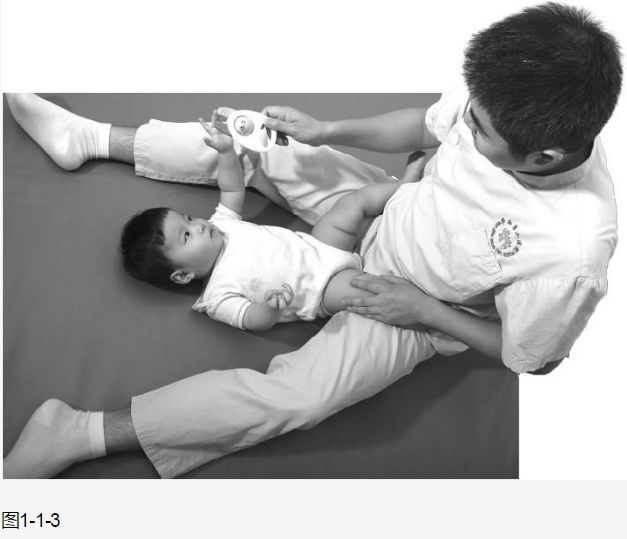 ( 3 )也可将玩具置于一点,鼓励婴幼儿伸手抓握(图1-1-3 )。