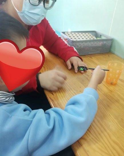 练习用勺舀塑料穿珠或玻璃珠练习用勺舀绿豆或米练习用勺舀湿沙子练习用勺舀水这项训练重点是提高孩子的腕部与手的配合协调能力