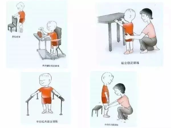 除了在康复科、康复医院等康复机构的治疗和训练外,日常家庭训练也是必不可少的,训练时要按照小儿的运动发育顺序,如从头部的控制到翻身、坐起、爬行、站立、行走等顺序先后训练,有步骤地进行康复训练。
