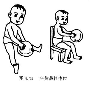 在坐位时,应鼓励患儿双腿分开如图4.21