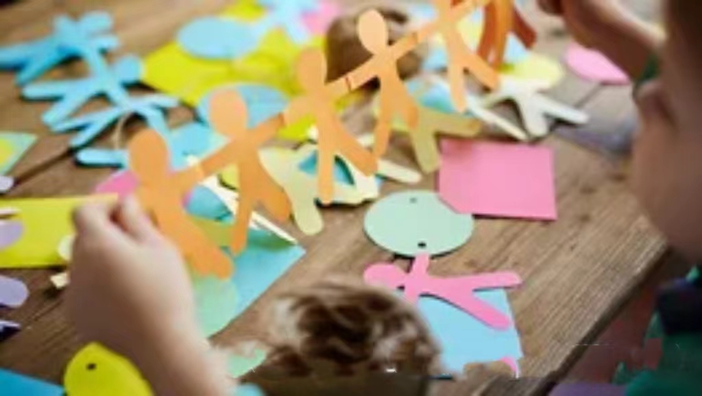 (3)剪纸:能够描线画出一定形状且能握住剪刀的儿童可以开始进行此项训练。训练对象一般为3岁以上儿童。
