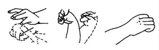 最后到肘关节上下慢慢地来回搓,这种训练方法可通过训练员的手掌、手指来刺激患儿的予及前臂的皮肤、感觉器官,导引患儿手掌伸展。