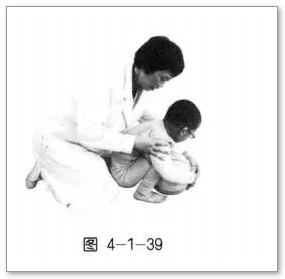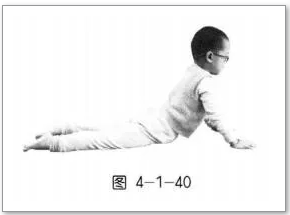 (1)孩子俯卧,双上肢支撑,上身抬离地面,双下肢伸展【图4-1-40】。